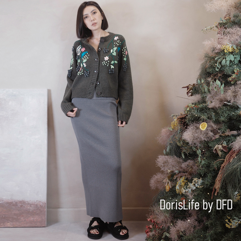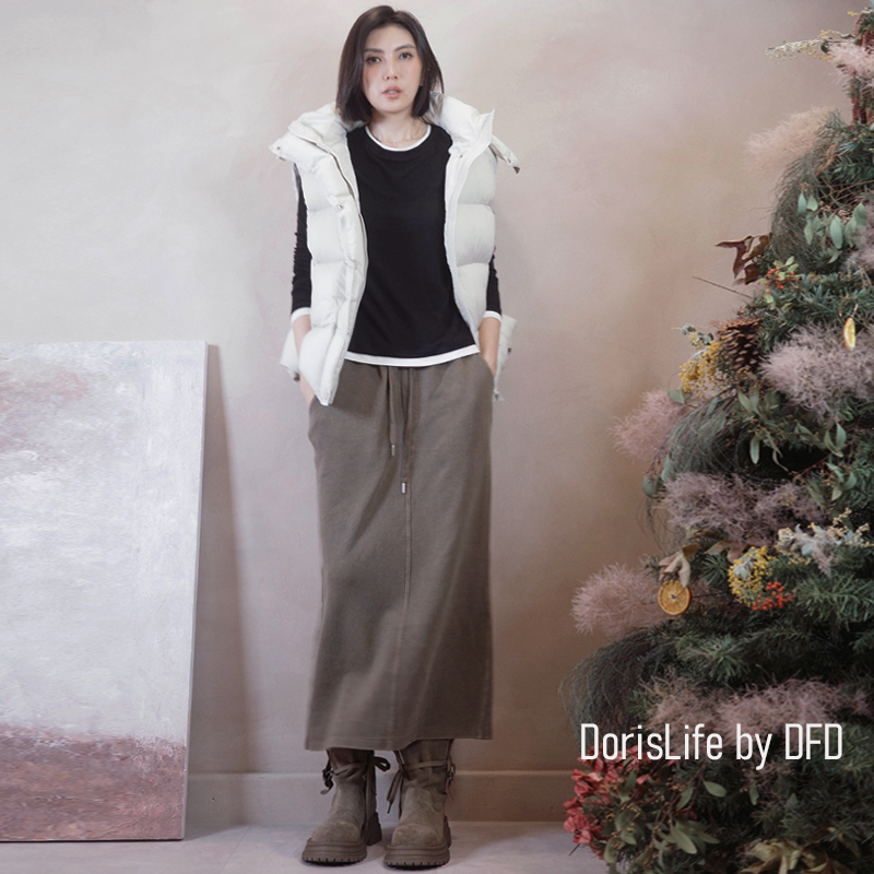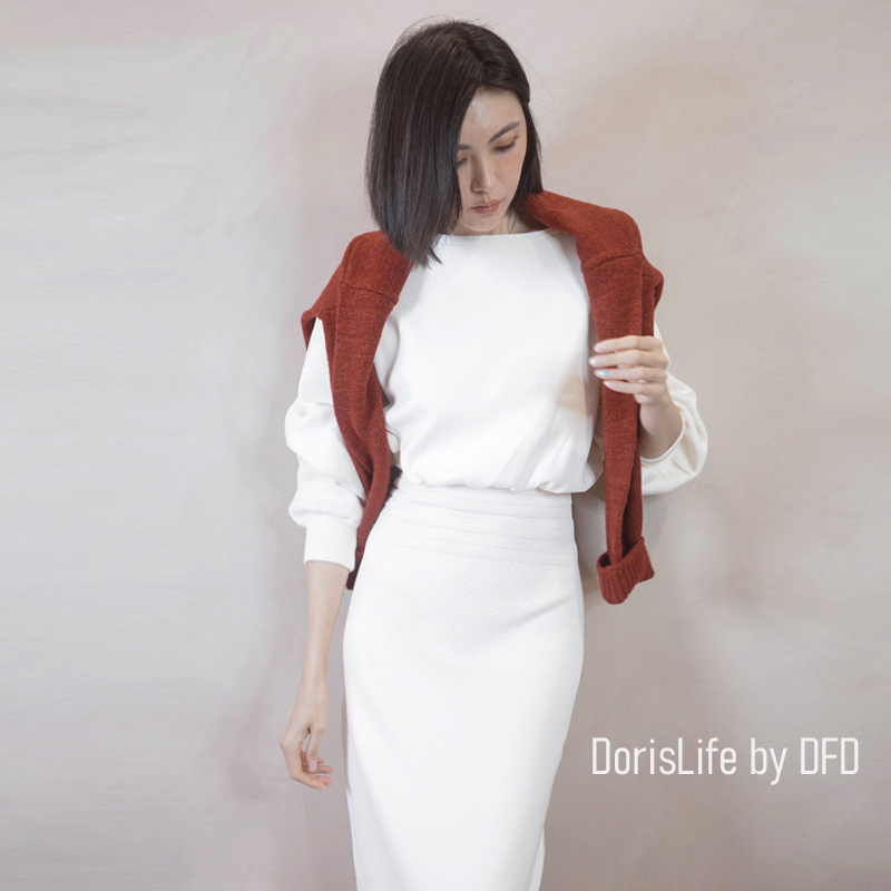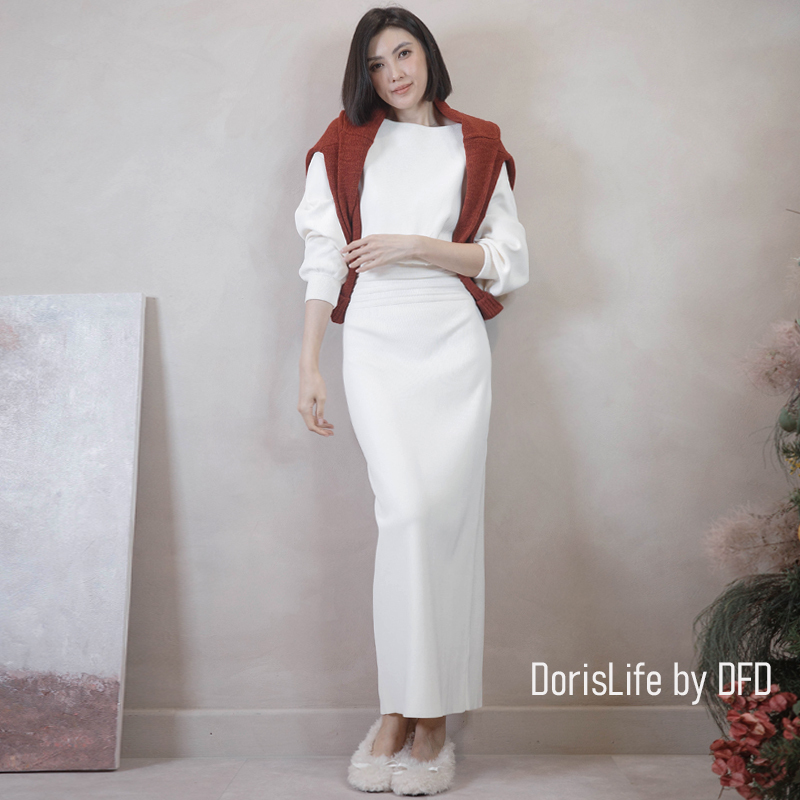 可以跟6T21針織螺紋後開岔長裙(附腰帶)搭成一套