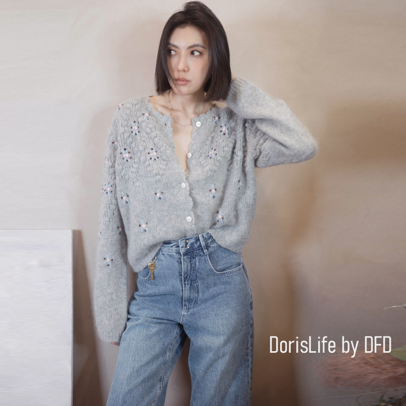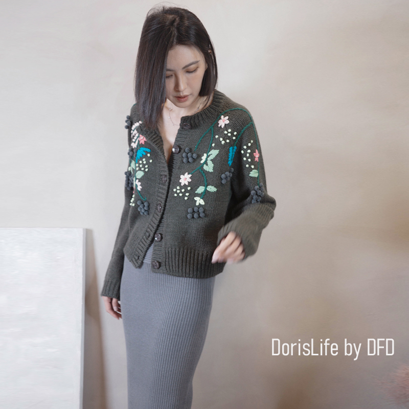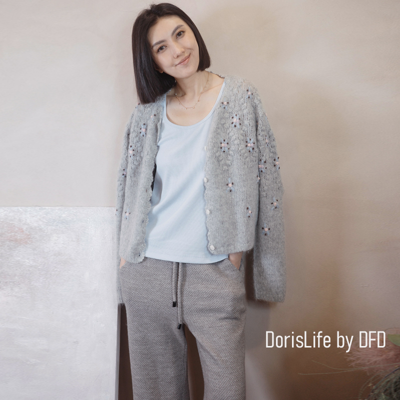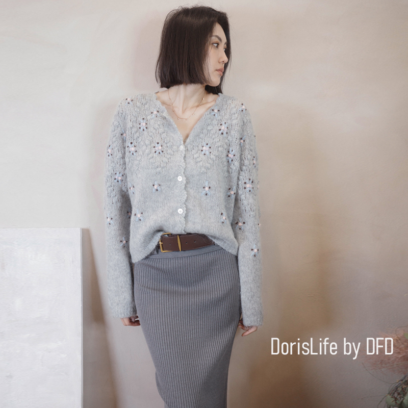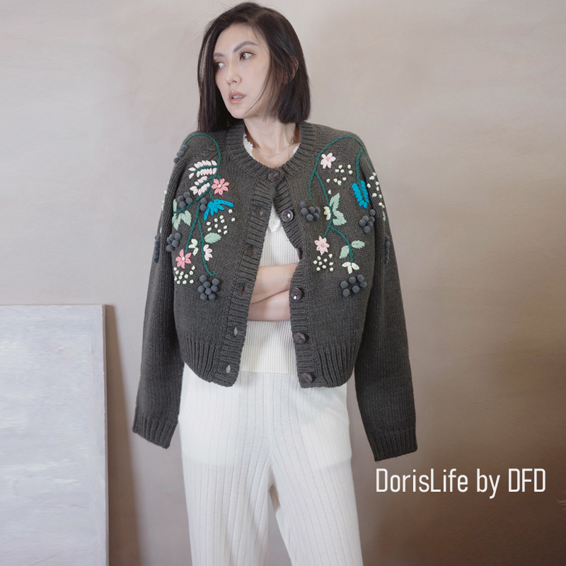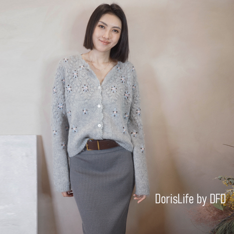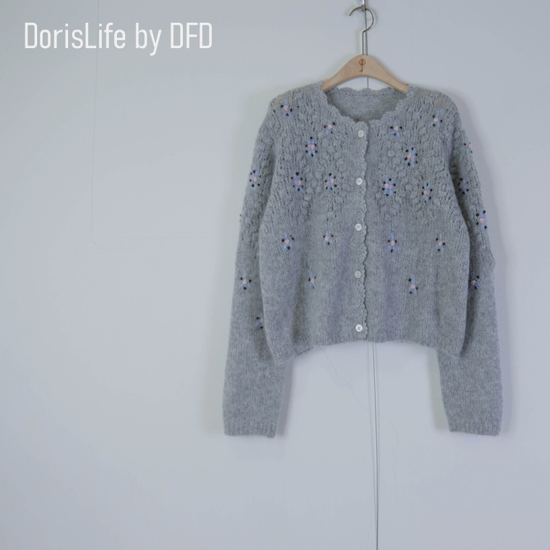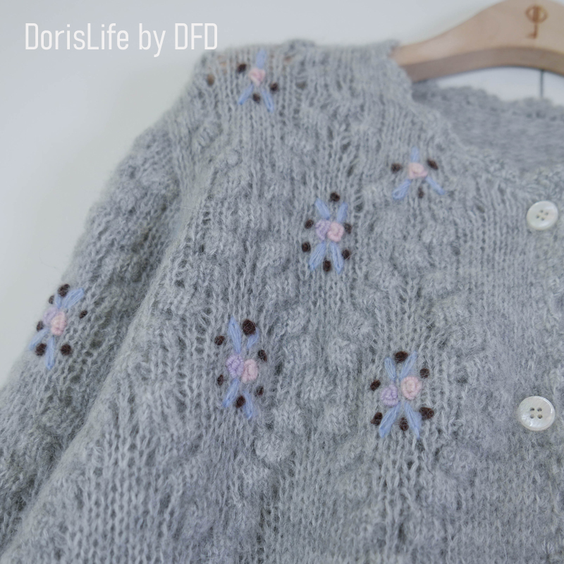 ♣ 6T02 鈎織蕾絲小花刺繡針織外套 奶油 | 灰色 NT.2980