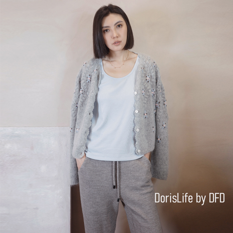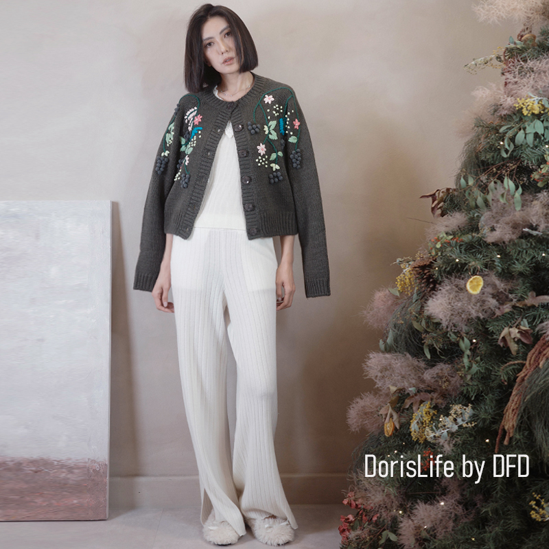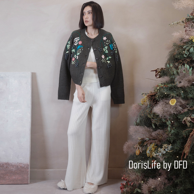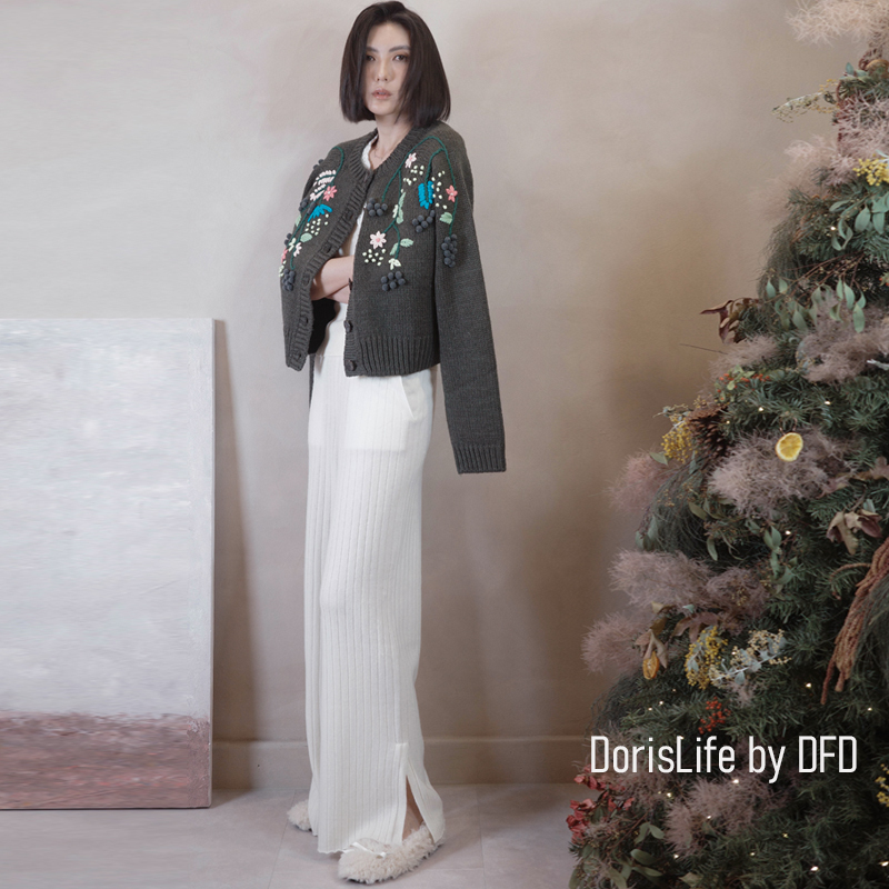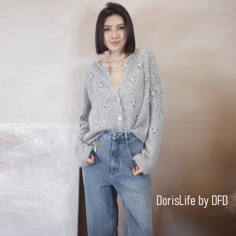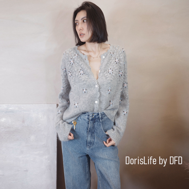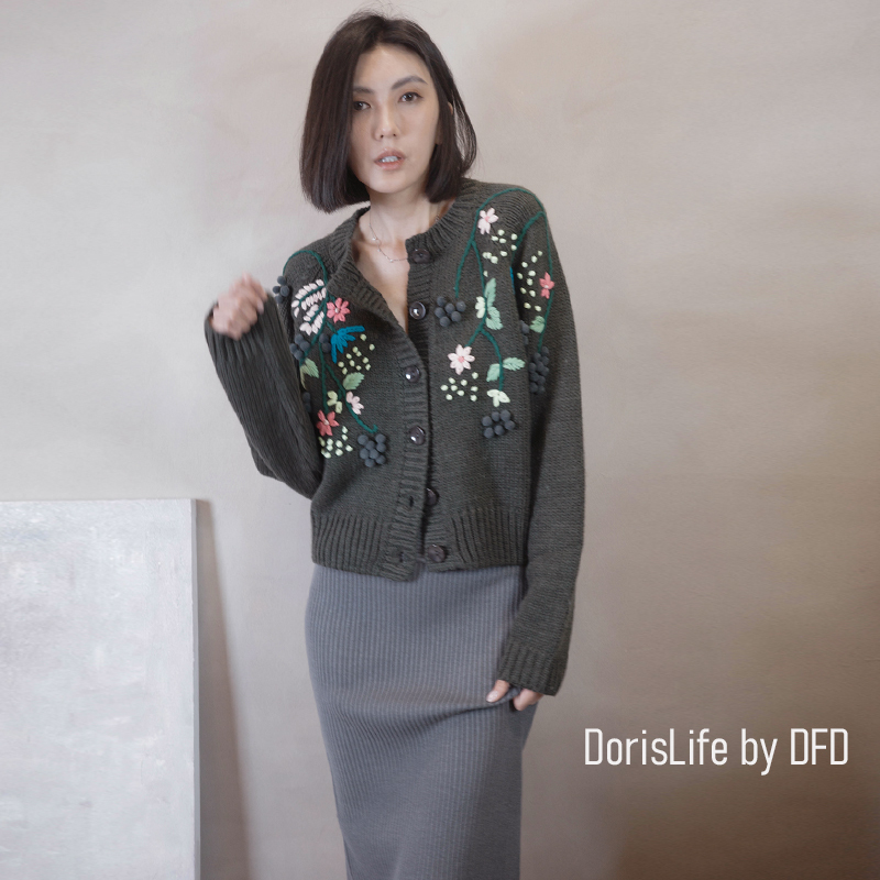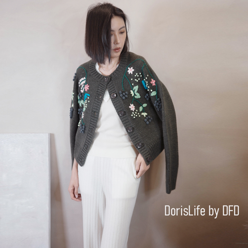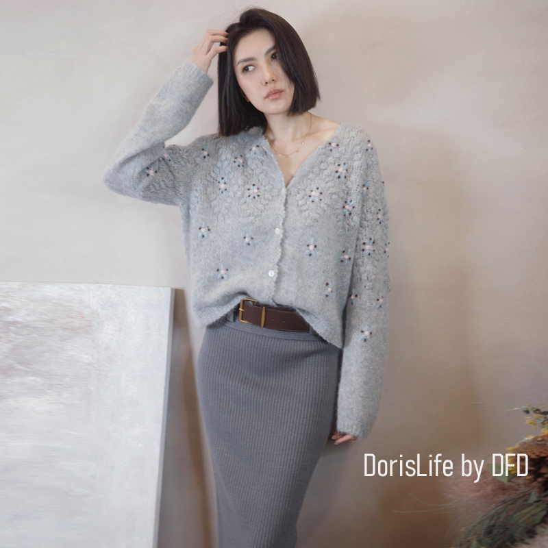 ♣ 6T02 鈎織蕾絲小花刺繡針織外套 奶油 | 灰色 NT.2980