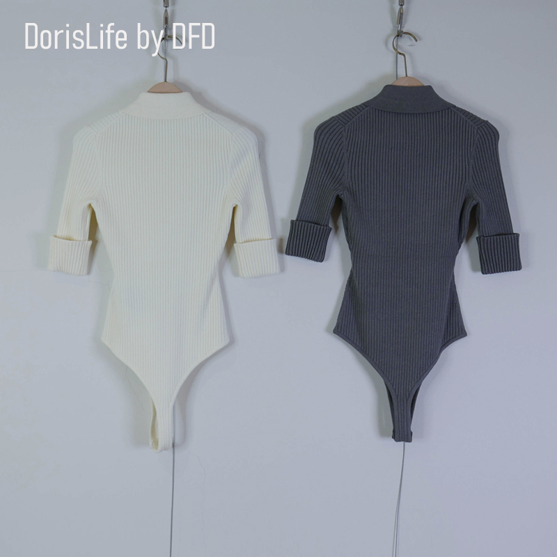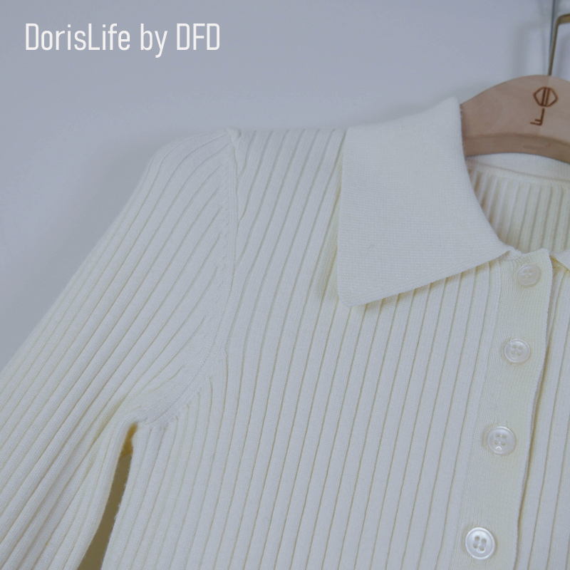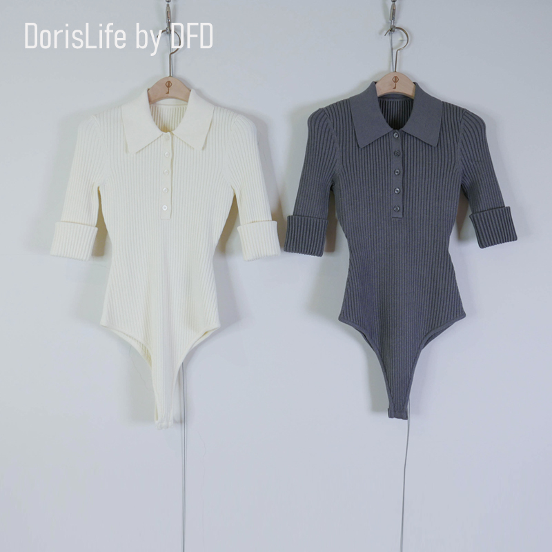 ♣ 6T11 復古針織螺紋POLO排釦上衣 灰色 | 奶油 NT.2280