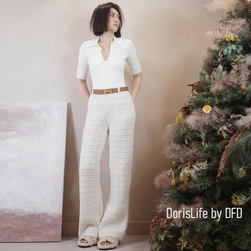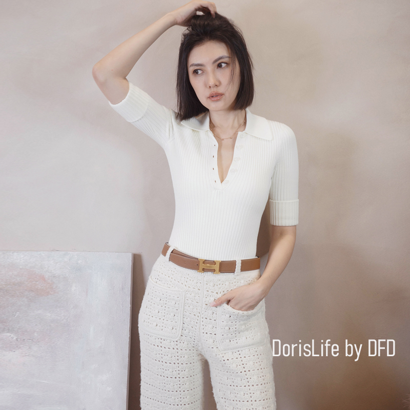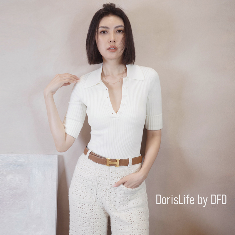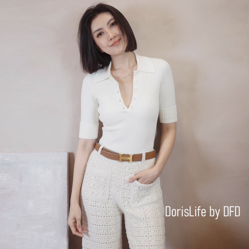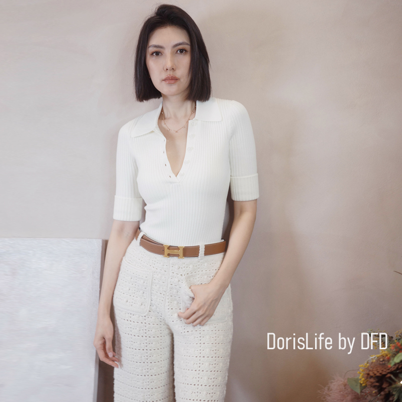 可以跟6T11復古針織螺紋POLO排釦上衣搭成一套