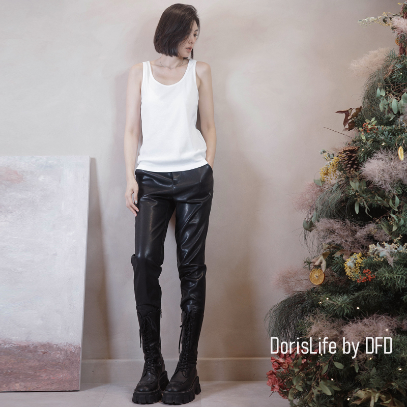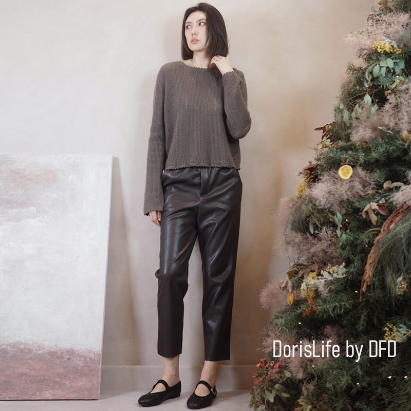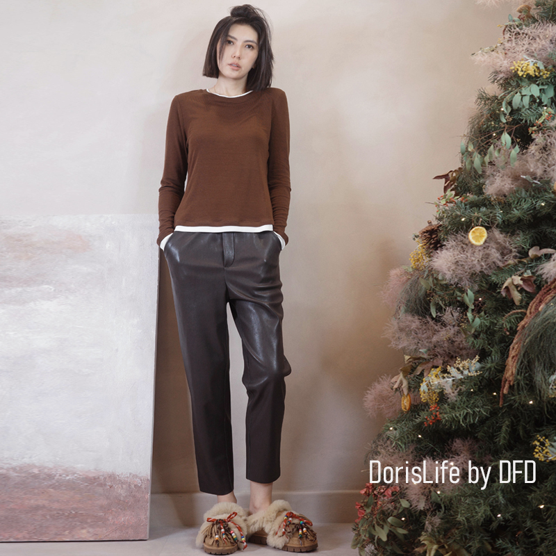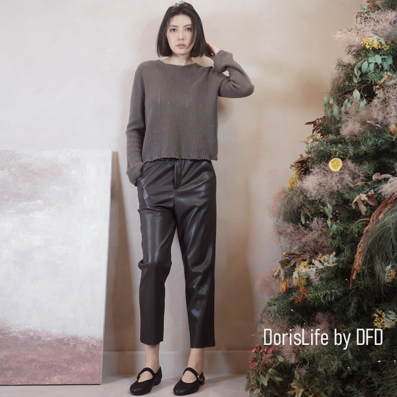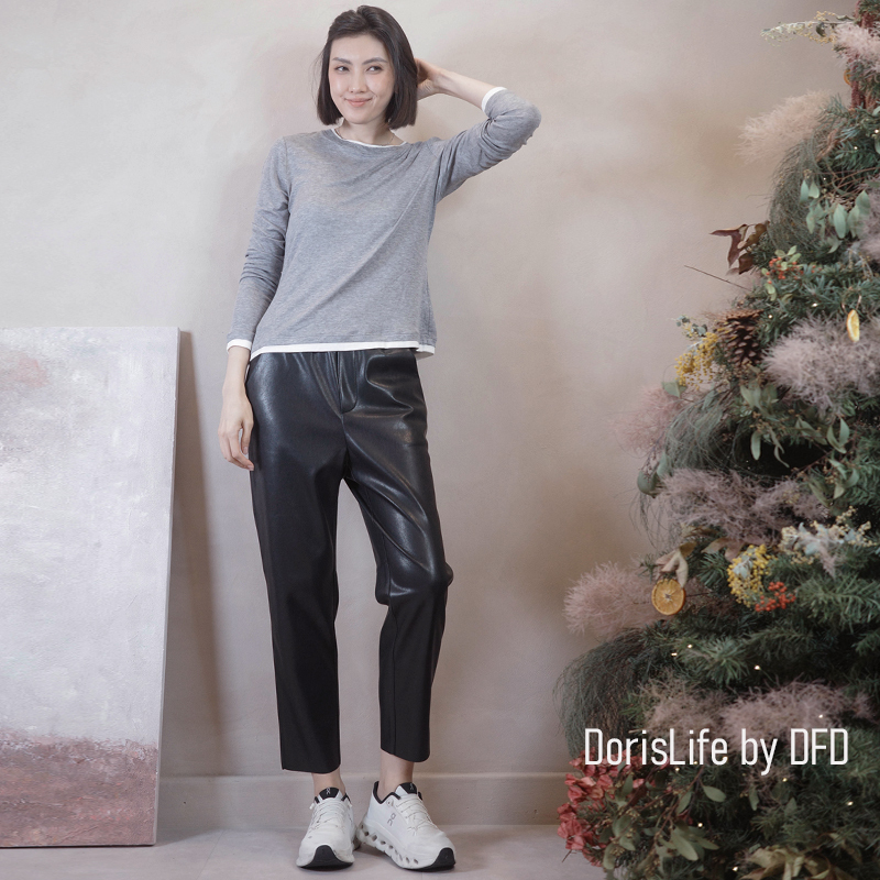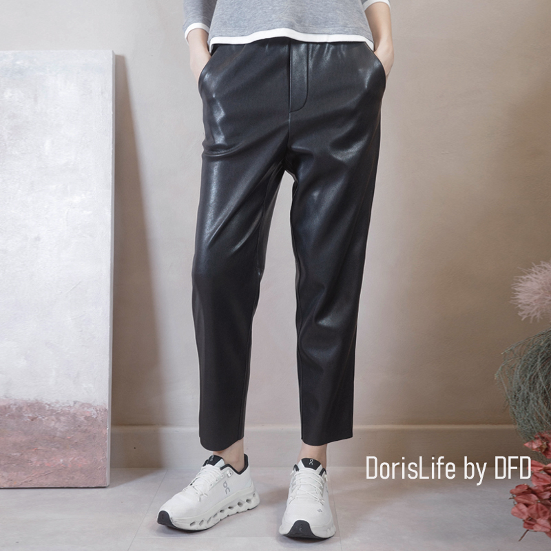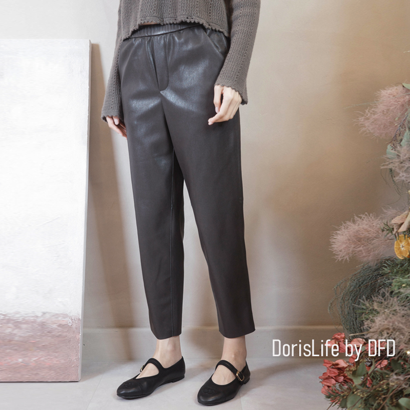 ♣ 6T28 彈性腰頭俐落西裝皮9分長褲 黑色 | 咖啡 NT.2280
