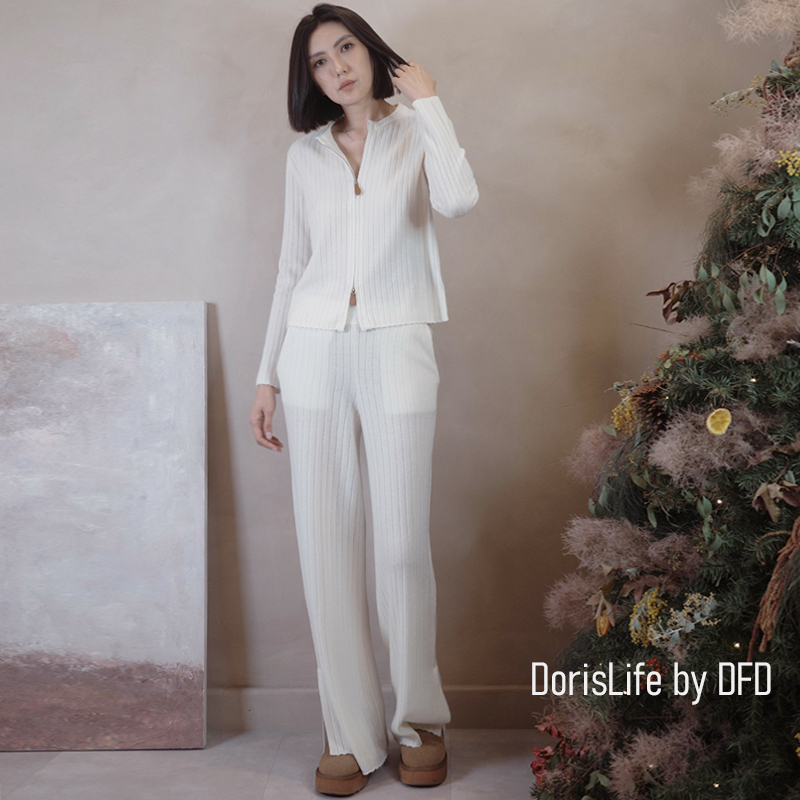 ♣ 6T25 Cashmere 螺紋拉鍊外套套裝 NT.5980
